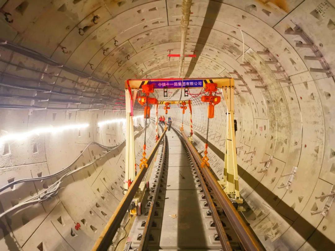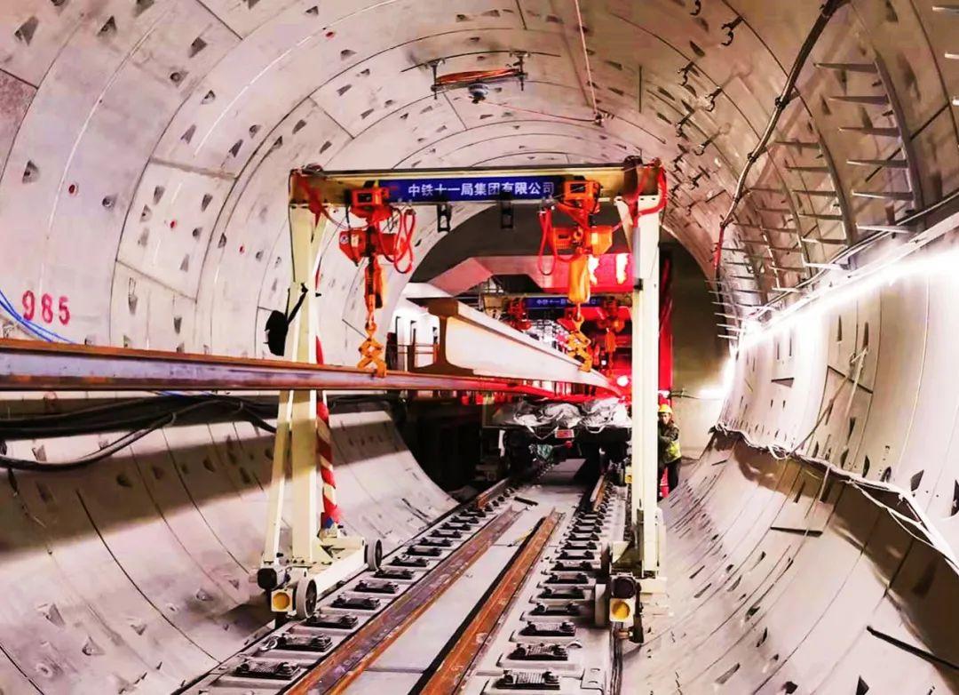 相比于拖拉式铺轨方案和轮胎式铺轨设备,新型龙门吊铺轨模式在地铁隧道内占用空间小,满足后续专业限界要求,为系统、机电设备安装等专业提供了施工空间,能快速度、高效率完成铺轨,保证整体工期节点。