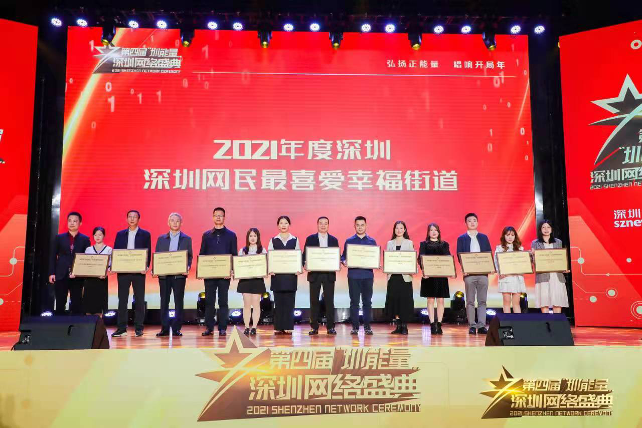 读特客户端·深圳新闻网2021年12月16日讯(记者 杨涛)12月15日,第四届“圳能量”深圳网络盛典隆重举行。本届网络盛典以“弘扬正能量唱响开局年”为主题,盘点深圳互联网行业一年来取得的新探索、新技术、新成就和新经验,并现场揭晓多个重磅奖项。其中,龙田街道获评“深圳网民最喜爱幸福街道”,成为全区唯一获此殊荣的街道。