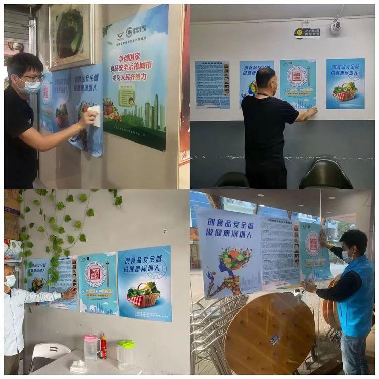 龙岗区食药安办加印超万份创城宣传海报,发动市场监管所、街道、社区、督导员及一街一车一室力量全力开展宣传,全面强化创城宣传及现场迎检工作,营造浓厚创城氛围的同时,进一步规范经营单位食品安全提示工作。