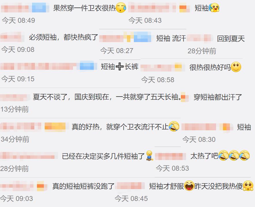 问:可以用“热到穿短袖”来形容的