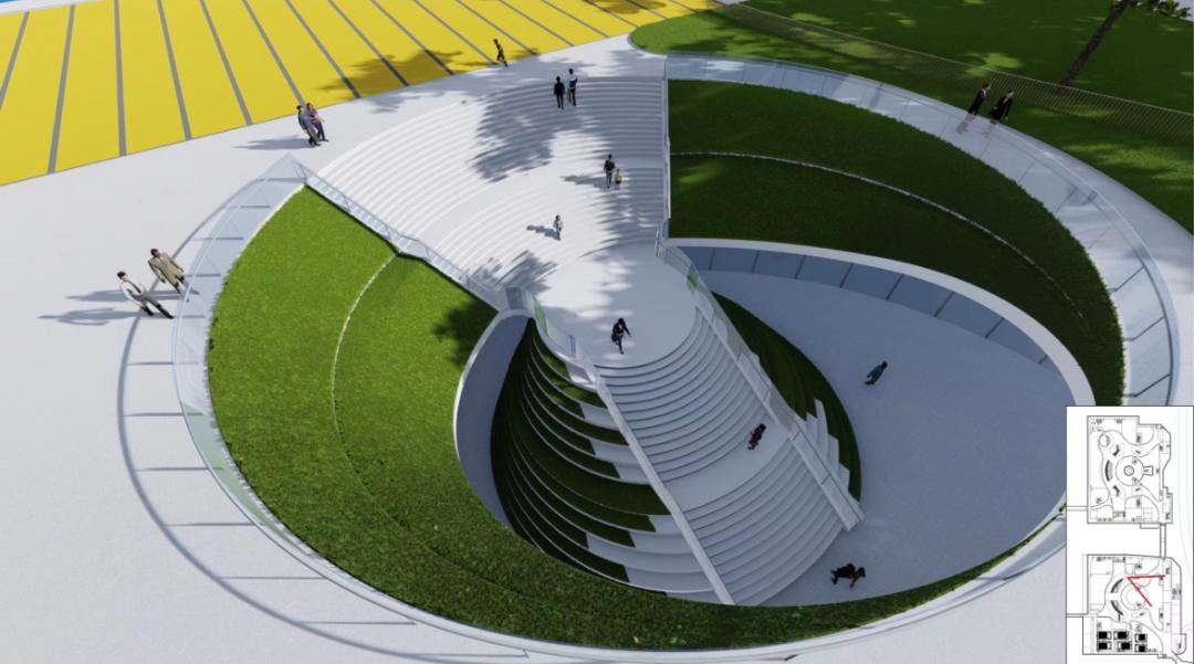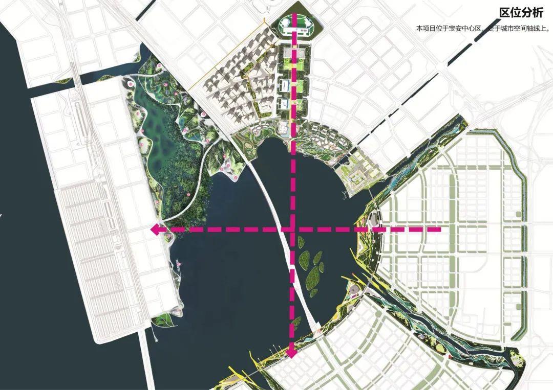 该项目与宝安中心区中央绿轴另一侧方形建筑宝安区图书馆、宝安青少年宫相互呼应,形成“天圆地方”整体格局,构成一个文化气息浓郁的生活空间,为市民提供多方位、多样化的文化体验。