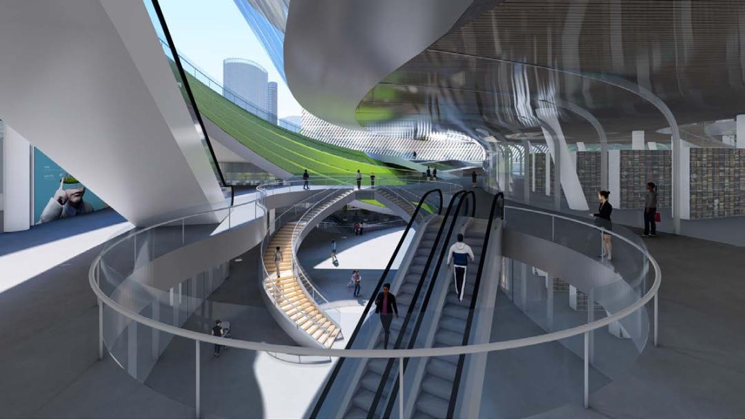 地下建筑面积9.6万平方米,主要包括公共阅读、亲子活动体验、剧场、文化发布厅及服务配套等。