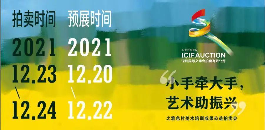 深圳国际文博会拍卖有限公司将于2021年12月23日至24日于文博会拍卖小程序举办文博会公益拍卖。本场拍卖会将拍卖包含爱心艺术家无偿捐赠的精品力作52件书画艺术品,由东方国石文化产业(深圳)有限公司筹集的名家名石精品12件作品,深圳国际文化产业博览交易会公司2021年度“小手牵大手,艺术助振兴”之雅色村美术培训成果师生作品47组,共计111件拍品。