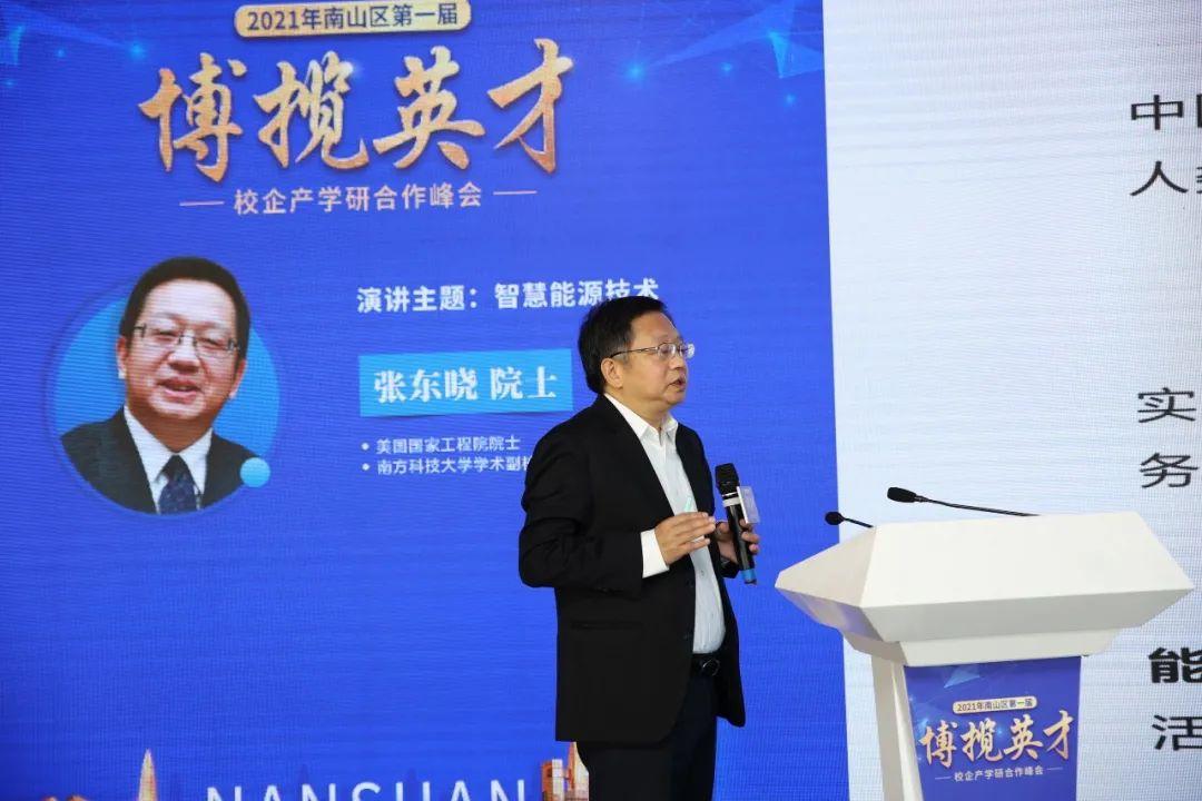 南方科技大学学术副校长兼教务长张东晓院士在峰会上谈到,南方科技大学致力于推动科研成果和实际产业需求的紧密结合,积极与各类企业开展产学研合作,学校目前已开展近800项横向合作,合同总金额超过9.2亿元,与56家企业成立联合科技机构。通过深度横向合作,进一步加强了学校基础科研成果与产业的契合度。南山区人民政府和南方科技大学共同主办2021年南山区第一届“博揽英才”校企产学研合作峰会,是贯彻落实习近平总书记在中央人才工作会议上的重要讲话精神的具体体现,将有助于粤港澳大湾区高水平人才高地建设,促进校企产学研深度融合。