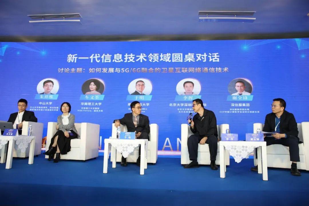 院士主题演讲结束后,由院士、教授、企业技术专家组成的豪华“智囊团”围绕“如何发展与5G、6G融合的卫星互联网络通信技术”和“新能源与碳达峰碳中和”两大主题,分别开展了2场圆桌讨论。来自南方科技大学、深圳大学、中山大学、华南理工大学、北京大学深圳研究生院和香港中文大学(深圳)的8位教授,以及来自深信服科技股份有限公司、中成空间(深圳)智能技术有限公司的2位高管分别就卫星网络通信领域的产业新机遇,发展新能源与实现碳达峰碳中和的意义等问题进行了探讨交流。