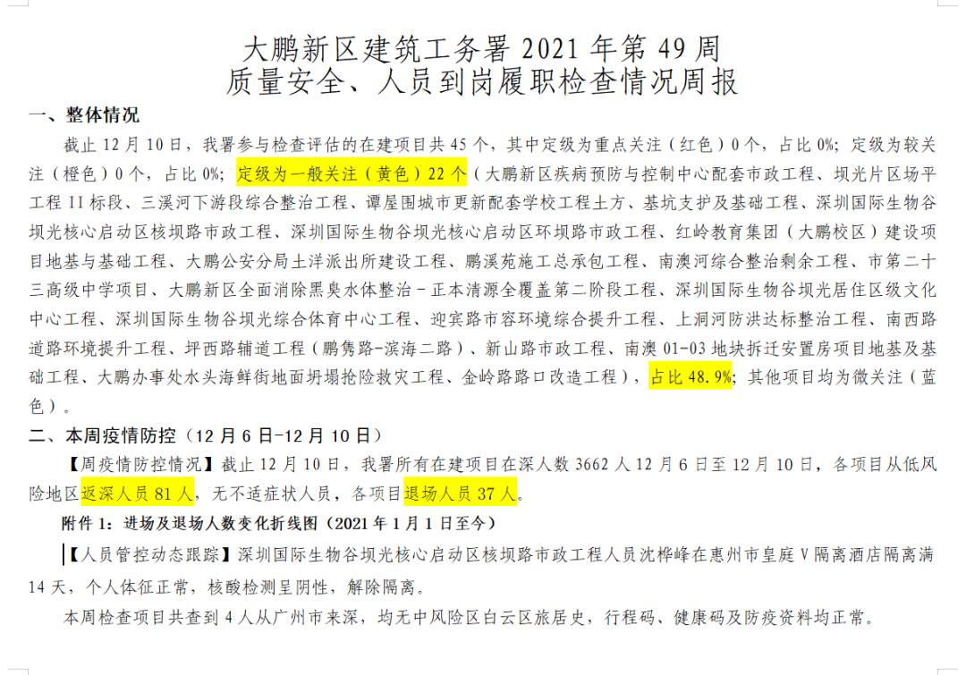 大鹏新区建筑工务署负责的项目具有点多、面广、量大特点,2021年在建项目93个,施工点位超过190个,大型施工设备超过370台,重大危险源815个。同时,今年国内持续出现多点散发疫情,双台风、短时强降雨、强季风气候等极端恶劣天气频发,安全生产面临严峻考验。