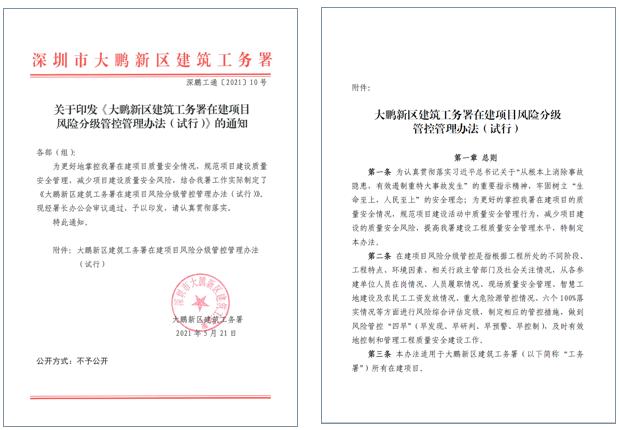 大鹏新区建筑工务署按照新区党工委、管委会总体部署,紧紧围绕综合治理、源头治理、重点治理、根本治理、文化治理,创新十大机制,全面筑牢安全生产体系,保障各项目平稳有序建设。