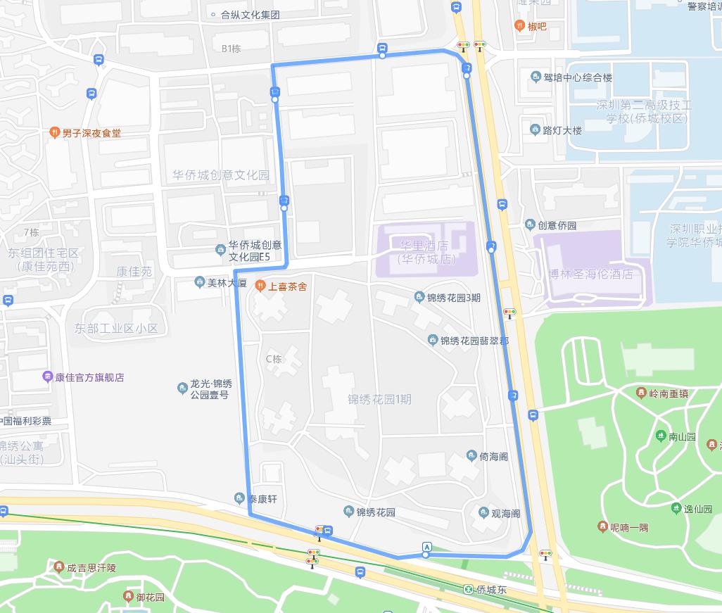 园区距离侨城东地铁站约1公里,周边虽有多个公交站点,途经公交线路也有9条,但都无法快速接驳侨城东地铁站。