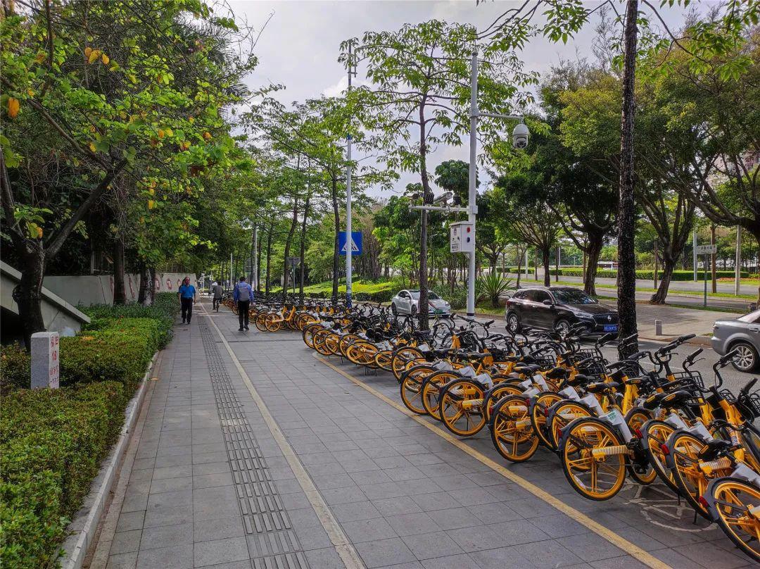 ▲侨城东地铁站出口处,停放了大量的共享单车