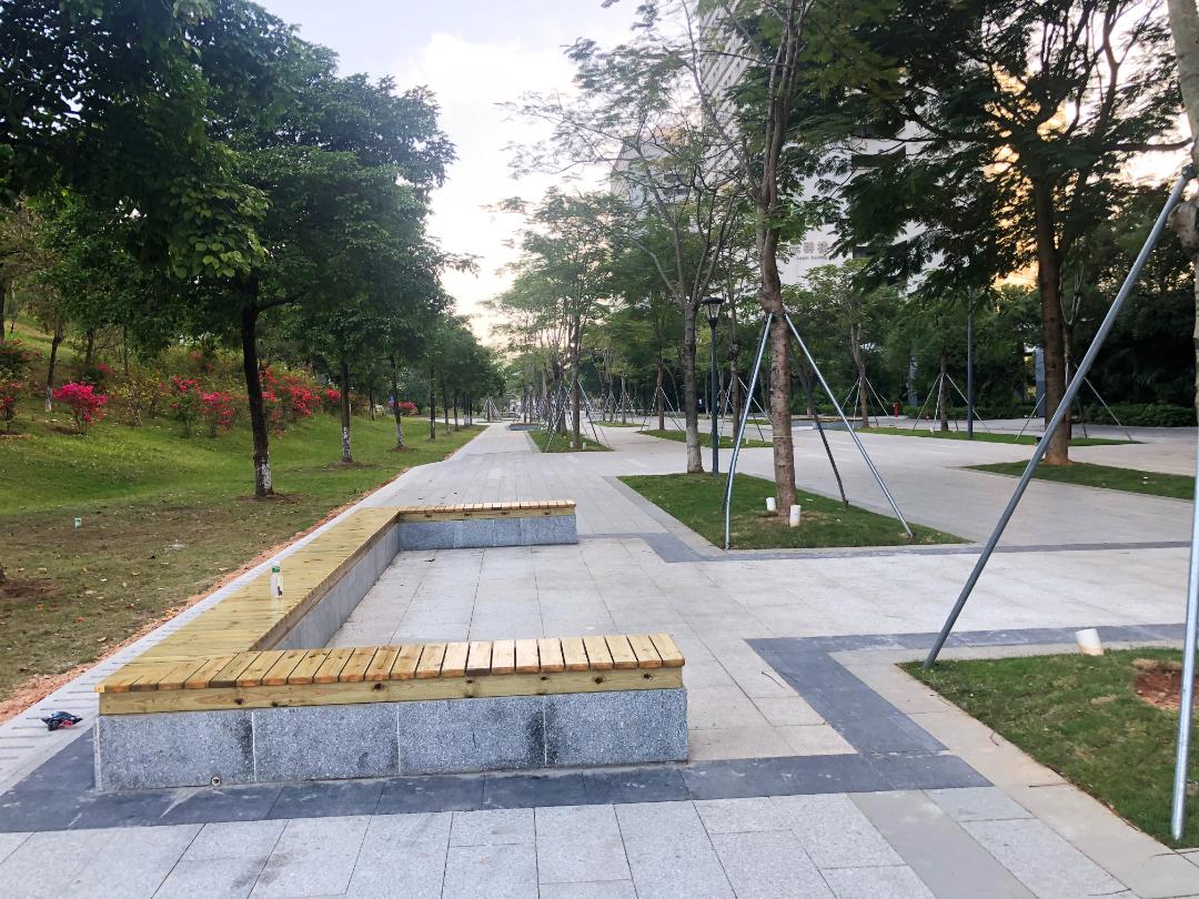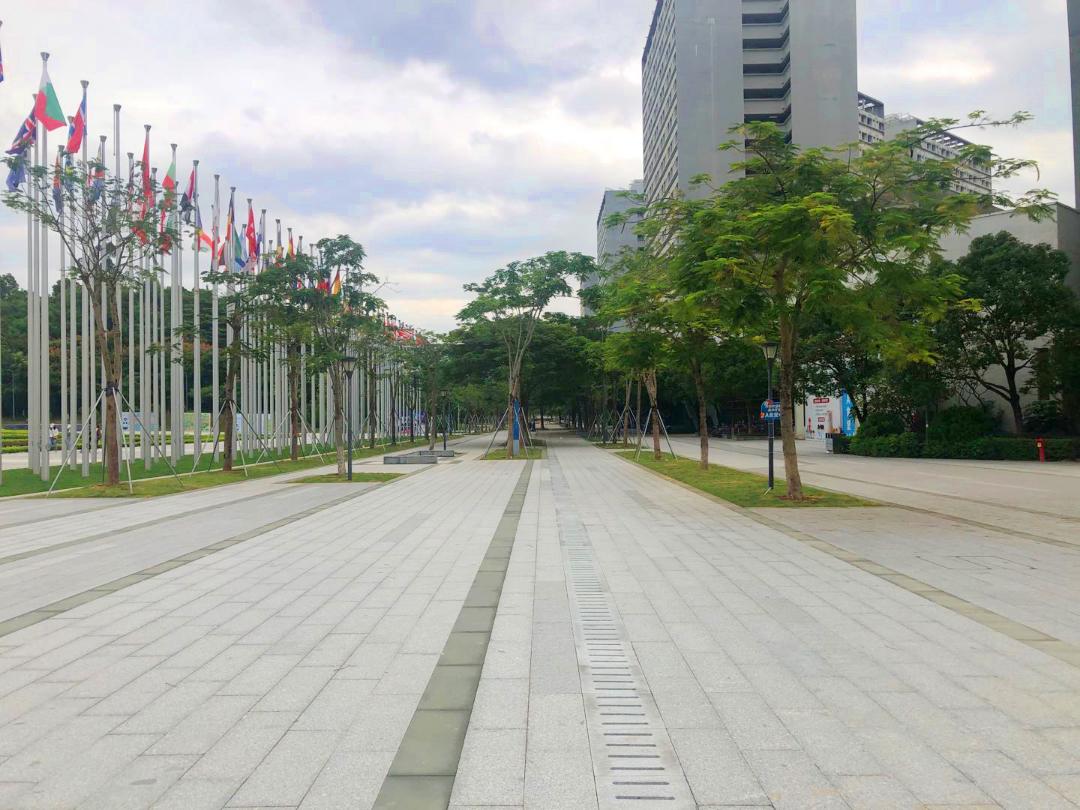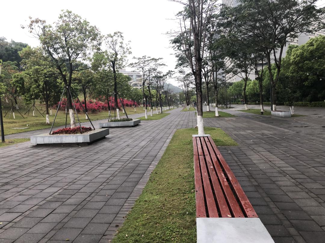 经与校方多次现场踏勘,最终确定将原布局零散和树种不一的乔木进行移植,重新种植凤凰木,打造一条凤凰大道,与万国旗广场形成整体,供全体师生举办活动、创业等。