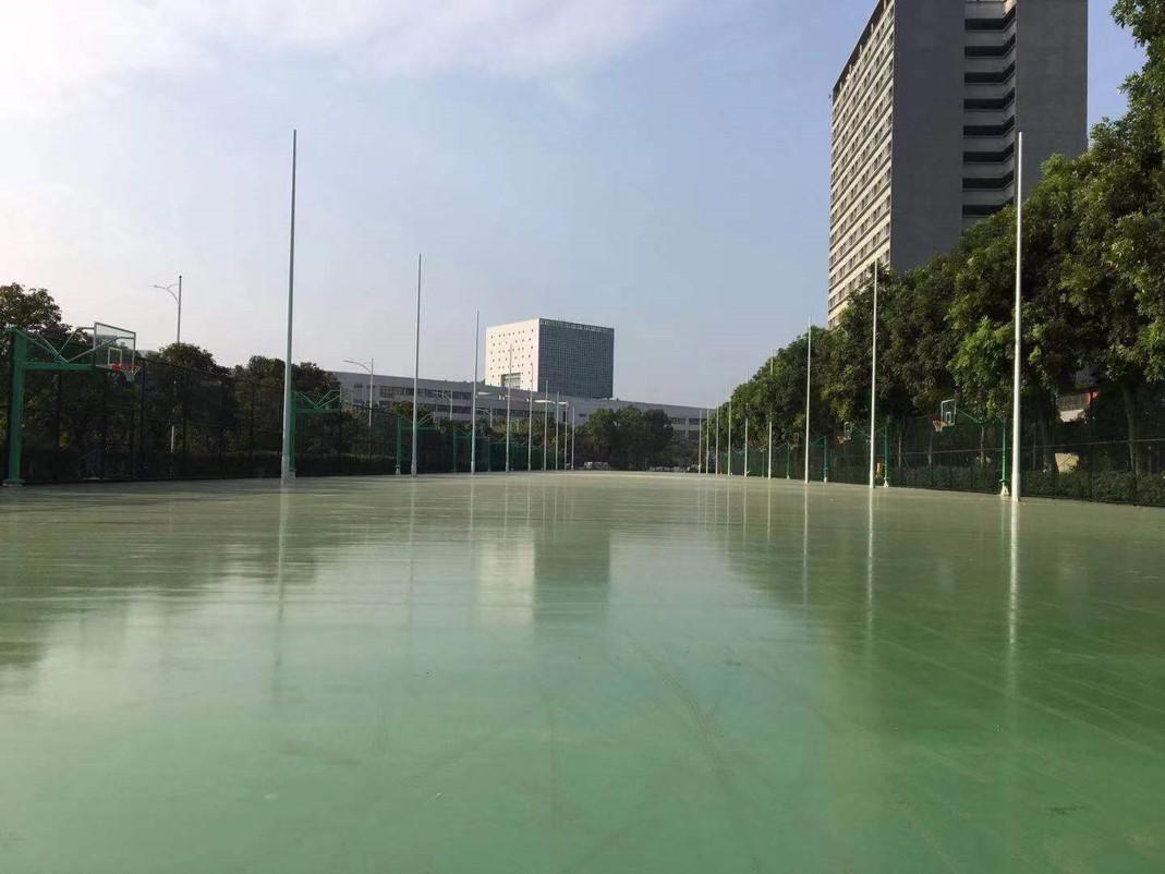地面为沥青混凝土地面,大运会结束后,仅在原沥青地面摆放篮球架供师生打篮球,运动环境较差,运动过程中师生容易受伤。