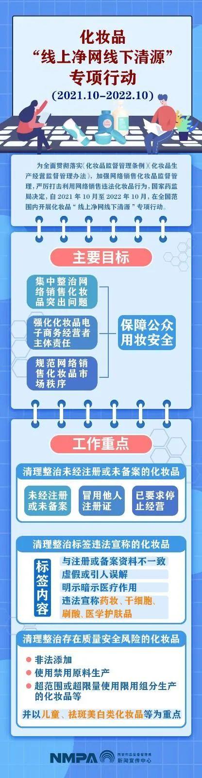 有下列情形之一的,由负责药品监督管理的部门没收违法所得、违法生产经营的化妆品和专门用于违法生产经营的原料、包装材料、工具、设备等物品;违法生产经营的化妆品货值金额不足1万元的,并处5万元以上15万元以下罚款;货值金额1万元以上的,并处货值金额15倍以上30倍以下罚款;情节严重的,责令停产停业、由备案部门取消备案或者由原发证部门吊销化妆品许可证件,10年内不予办理其提出的化妆品备案或者受理其提出的化妆品行政许可申请,对违法单位的法定代表人或者主要负责人、直接负责的主管人员和其他直接责任人员处以其上一年度从本单位取得收入的3倍以上5倍以下罚款,终身禁止其从事化妆品生产经营活动;构成犯罪的,依法追究刑事责任:
