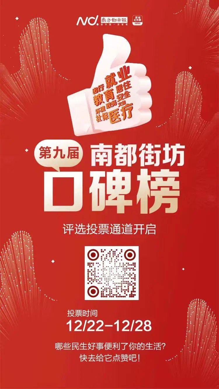 12月22日,主题为“工作为了人民,走出一条治理新路子”的第九届南都街坊口碑榜正式启动投票。此次活动一共征集了百件民生实事,覆盖市职能局、区级政府、区职能局、街道办、社区等100多家政府部门和单位,大鹏新区一共有9项民生实事入围榜单。