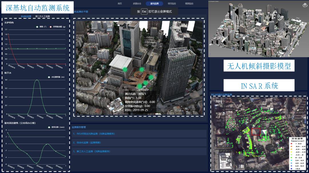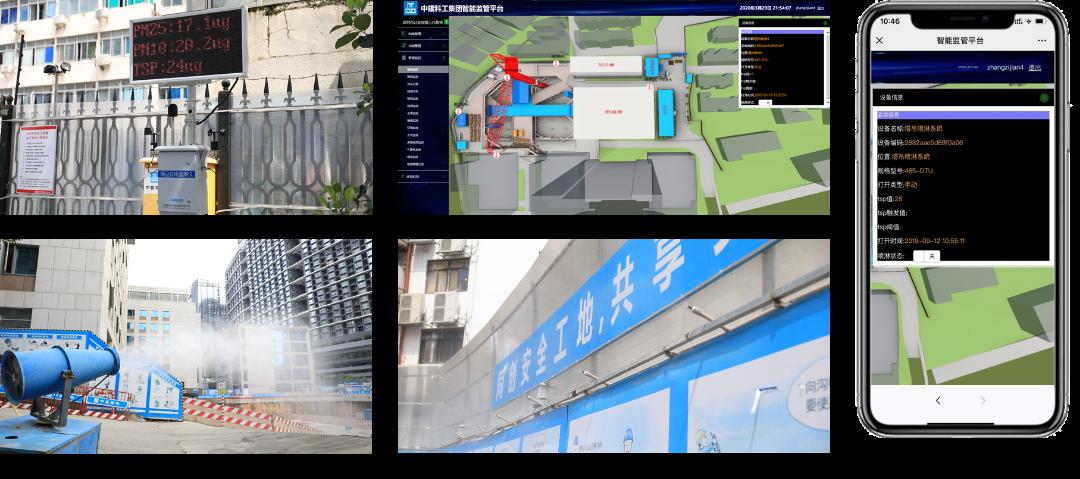 项目引入INSAR深基坑安全监测、智能安全帽、单兵对讲机、AI视频监控、TSP喷淋联动系统等各类智能化设备多达14项。