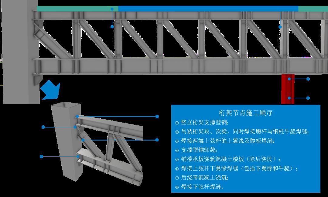 使用三维模型进行钢桁架节点施工复杂工序的交底。