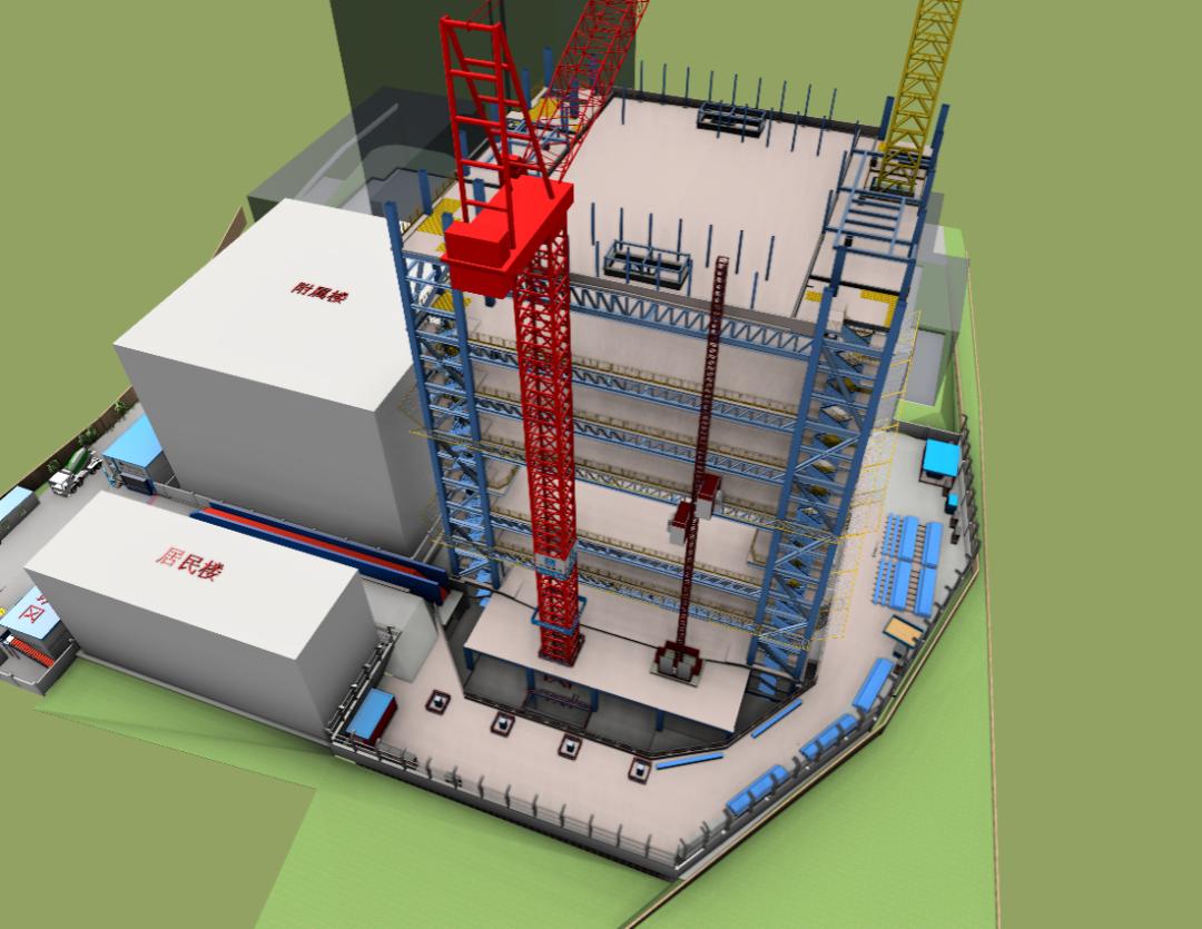 项目团队在每个施工阶段进行BIM场布预判、动态调整,解决各专业材料堆放、周转运输问题。