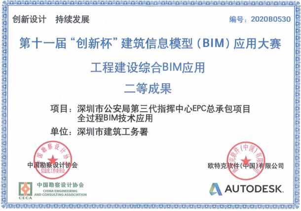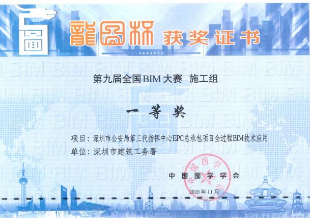 在市建筑工务署三年辛苦耕耘下,深圳公安“第三代”指挥中心项目获得多项国家级、省市级奖项,其中包含第九届“龙图杯”全国BIM大赛施工组一等奖、设计组二等奖、第十届与第十一届“创新杯”二等成果、首届工程建设行业BIM大赛综合应用一等奖等奖项,获得“工程项目信息模型认证”白金级。