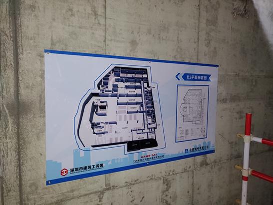 现场各楼层均张贴BIM模型展板,方便现场人员快速定位,了解该层功能分区与工作任务。