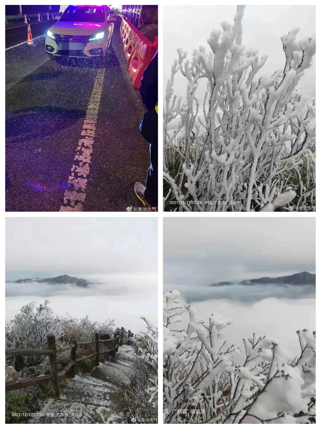 受寒潮影响,粤北高海拔山区出现雨夹雪、雾凇和雨凇