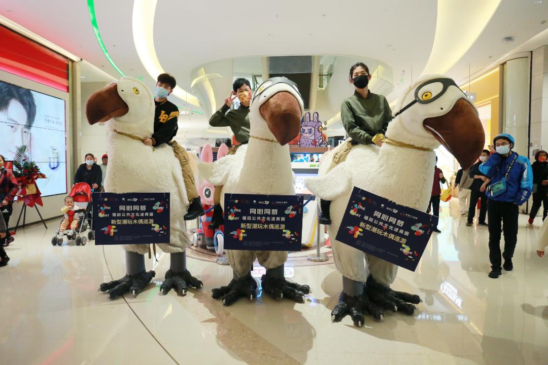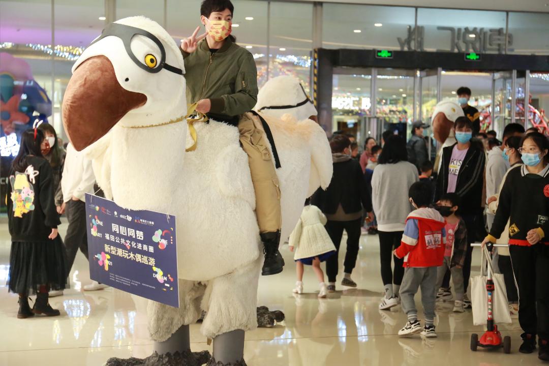 可爱的《渡渡鸟骑士》在商圈各处骑行