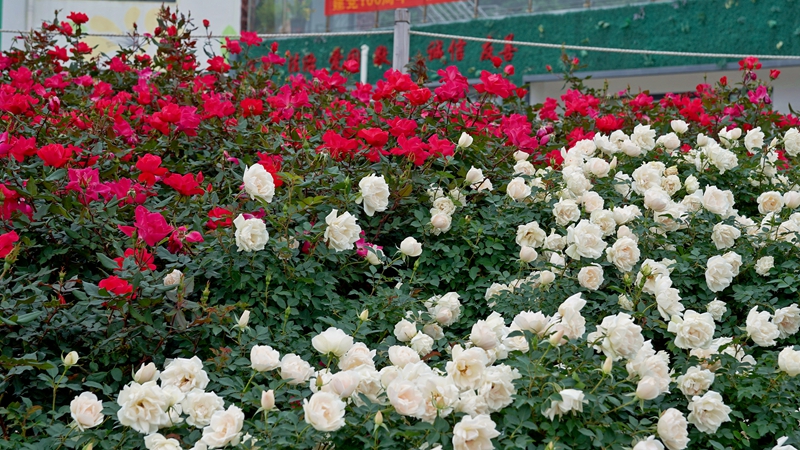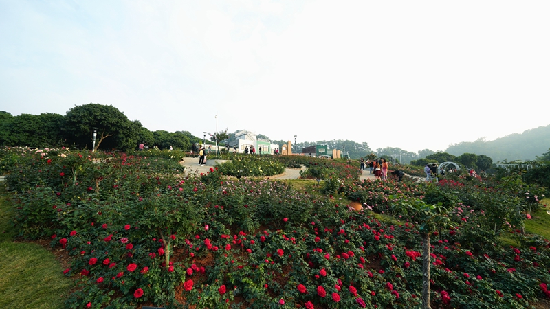 读特客户端·深圳新闻网2021年12月28日讯(记者 谢孙武 通讯员 黄海贵 刘承汉)近日,福永街道立新湖公园月季园的月季已开成花海,近2000平方米的月季园内,70多种一万余株形色各异的月季盛放,美不胜收,吸引了众多市民前来徜徉花海。
