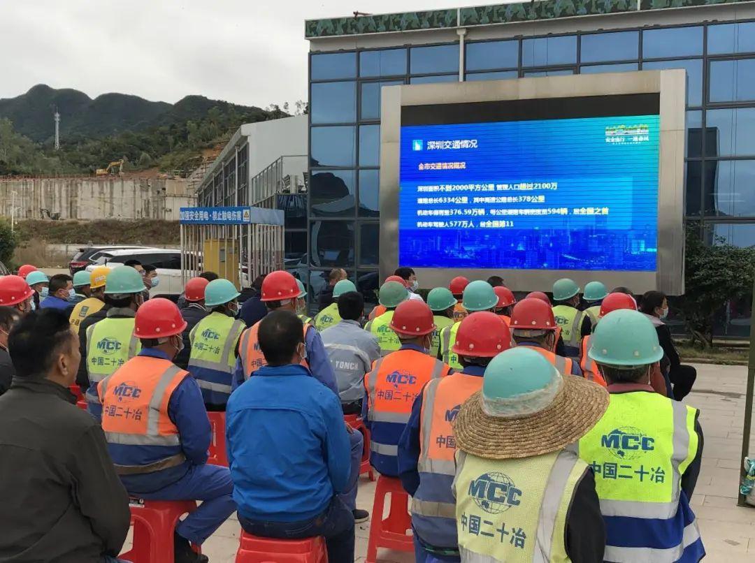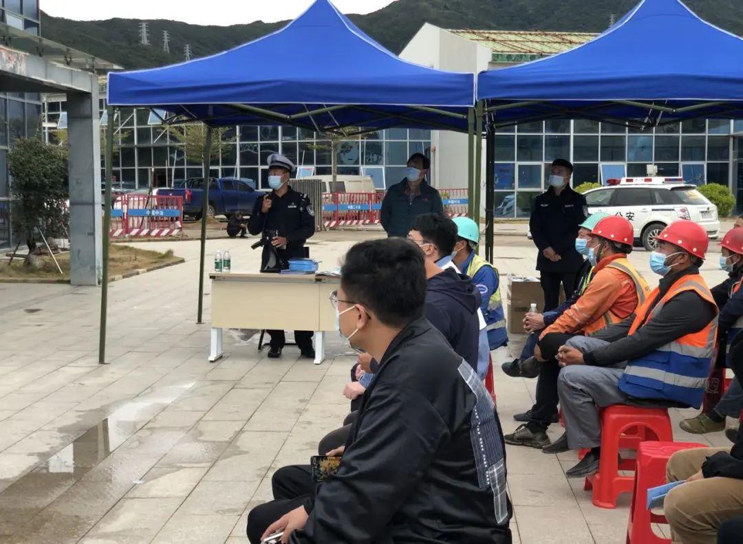 12月21日,新区建筑工务署联合市公安局交通警察支队大鹏大队、葵涌办事处在坝光临建三期开展交通安全警示宣传教育活动,坝光片区在建项目共有100余人参加。