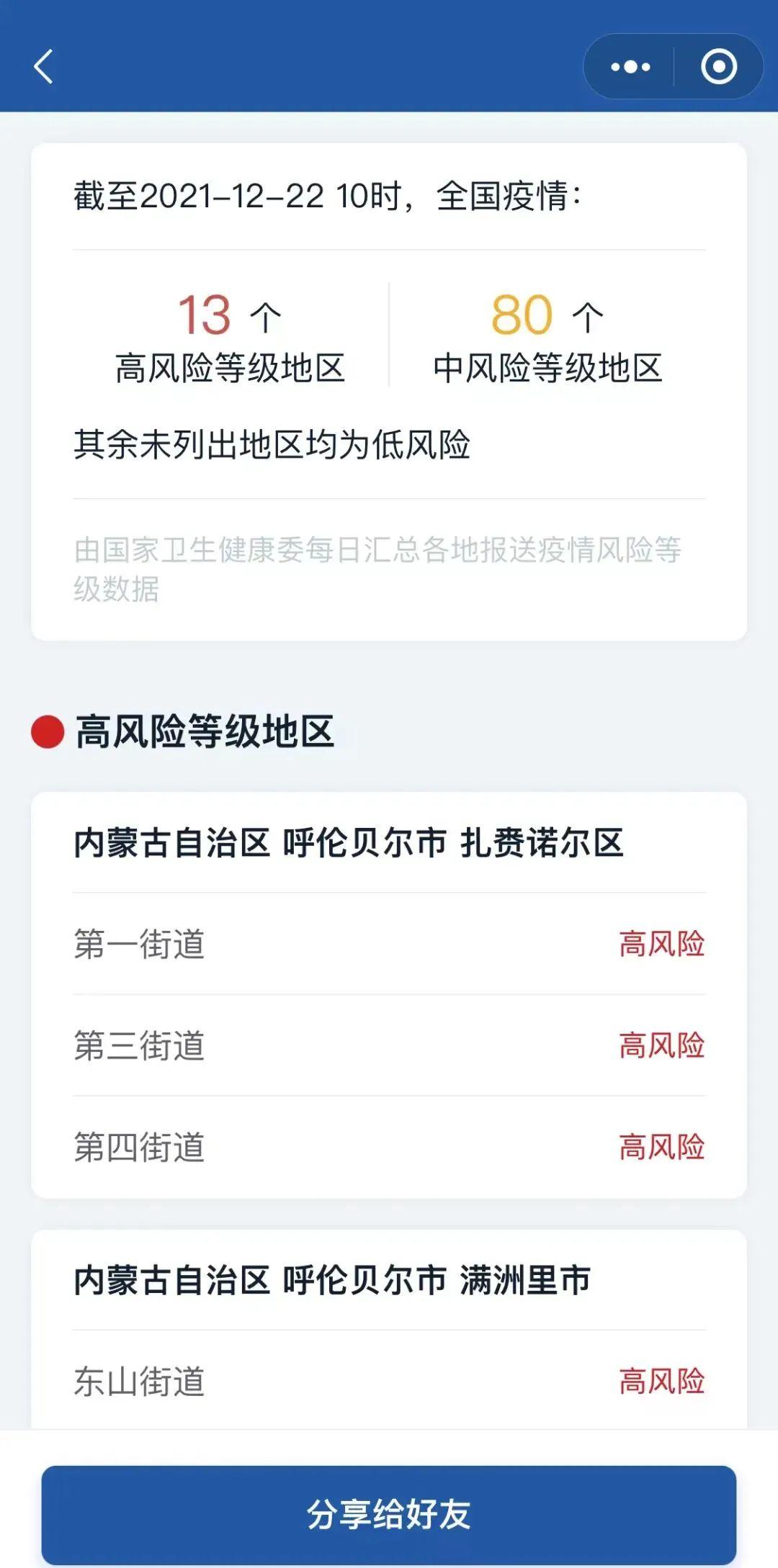 就可以查看全国疫情中高风险地区