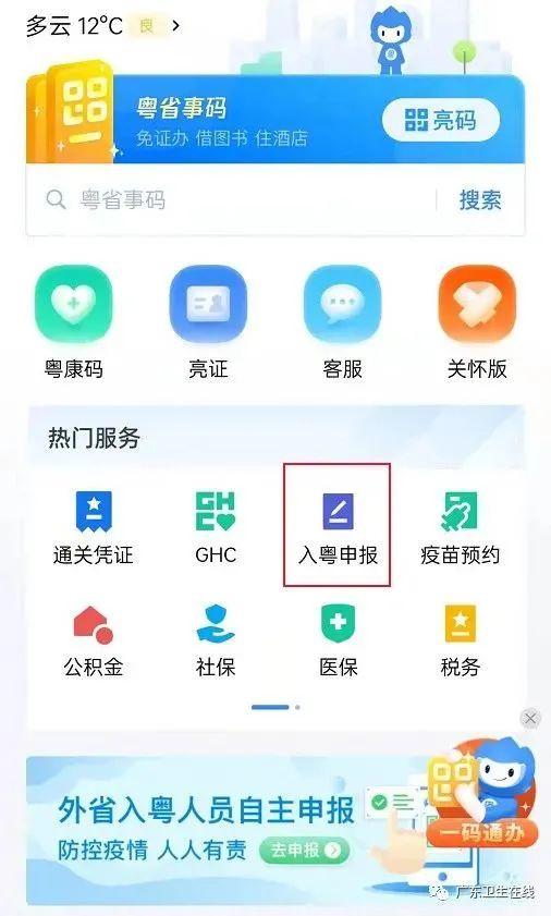 “粤省事-入粤申报”