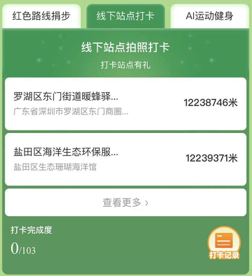 线上体验深圳公交3大红色线路34个站点,重温深圳革命历史,每日捐出每日运动步数解锁对应站点即可完成捐赠,每1万步捐赠1元。