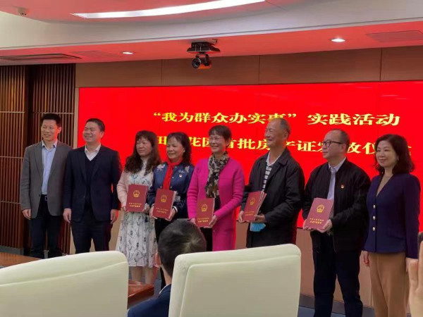 经过5个多月的奋战,三大难题全部得到破解,居民办理房产证的“路”被打通。12月10日完成田贝花园土地使用权证注销抵押登记、房屋初始登记,成功办理首批12本房产证并完成抵押登记。