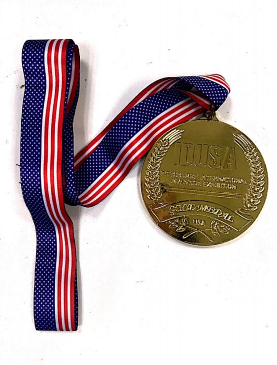 美国匹兹堡国际发明展给卢嘉欣同学颁发的金奖奖牌