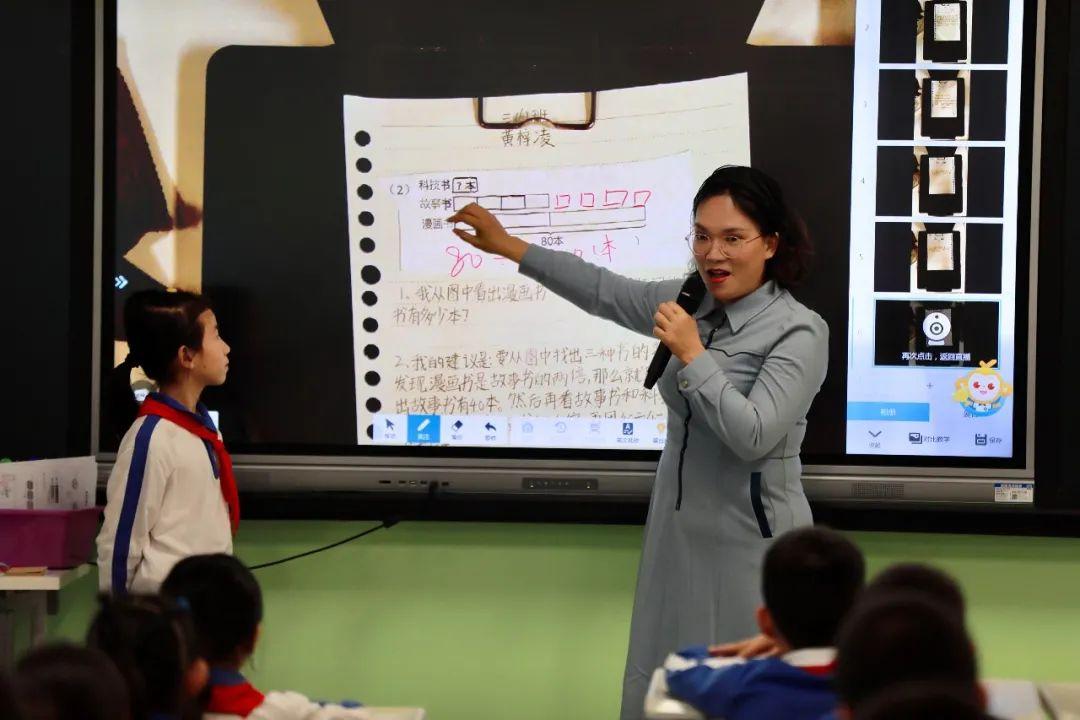 在数学魏冬梅老师的课上,每个孩子都是主角,老师则当起了幕后导演,让每一位学生达到最优化的发展。基于北师大教材对画直观图策略的重视,魏老师的这节专题评研课,将教材中的“看图列算式”编成一张专题练习小卷,在学生完成的基础上,识别学情,开展精准教学。整节课积极开展自主合作探究学习,由已经学会的学生组成“小讲师团”来讲授错题,让学生成为问题的发现者和解决者。同时,魏老师重视生生对话,把指导的权威性舞台让给学生,让小组内互帮互扶,学生间相互“指导”,老师则“隐身”到学生中间去,只在需要的时间出现,大大提高了课堂的效率。