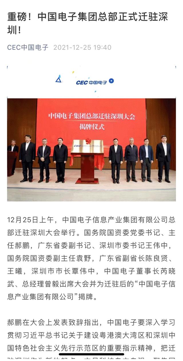 中国电子集团是以网络安全和信息化为主业的中央企业,兼具计算机CPU和操作系统关键核心技术。截至2020年底,中国电子拥有26家二级企业、15家上市公司,全年营收达2479.2亿元,已连续11年跻身《财富》世界500强。