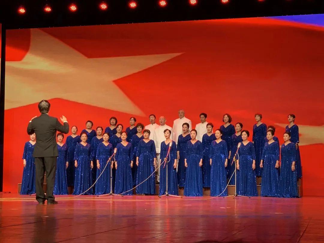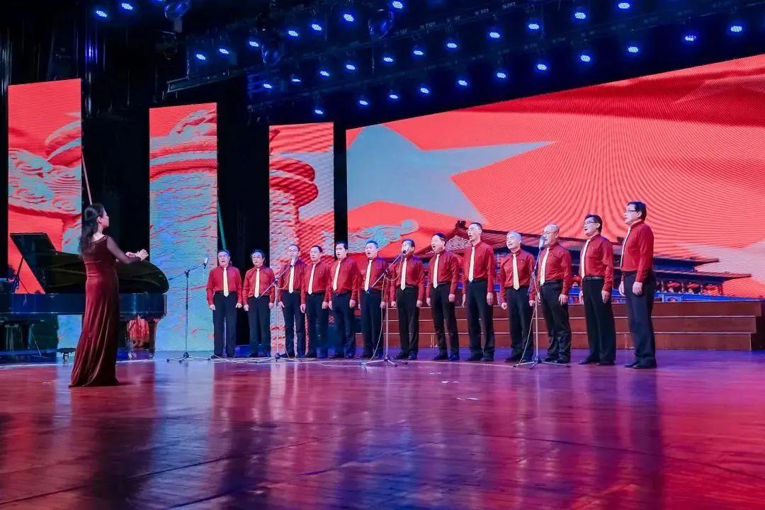 接着上场的是合唱团的男生们,这支队伍有过辉煌的战绩。他们献唱的歌曲是男声小合唱《今天是你的生日我的中国》,他们情感饱满、嗓音浑厚、歌声嘹亮、和声分明,引得不少观众们在台下跟着律动、哼唱。
