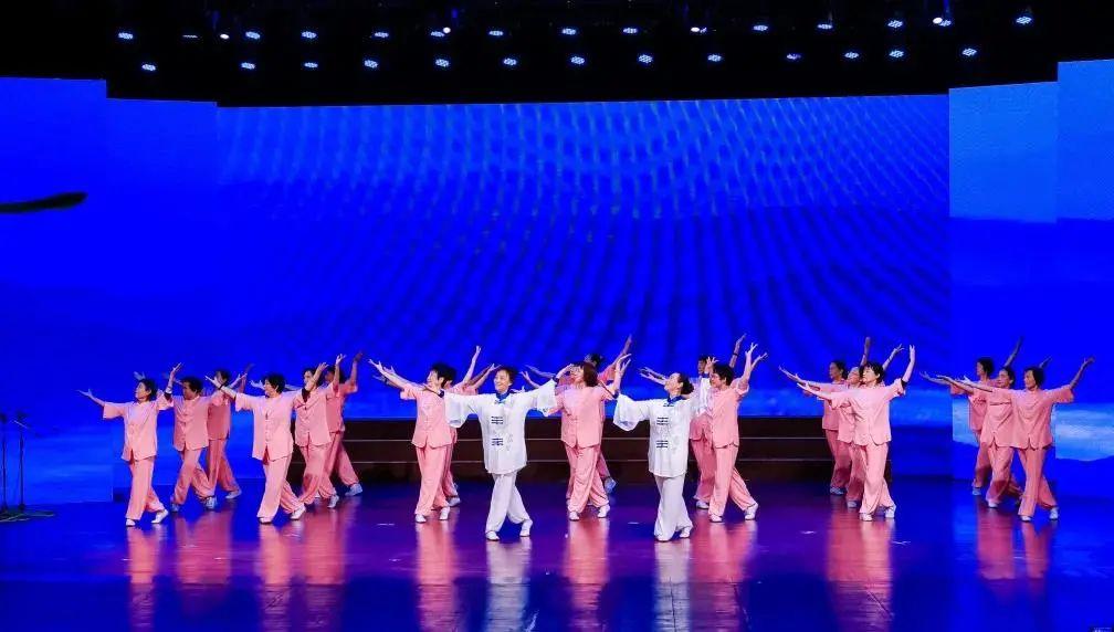 养生武舞班的《吉祥如意》在优美的民乐伴奏声中,舞者们将太极和舞蹈动作融为一体,一举手、一投足、一亮相,柔中带刚、沉稳灵巧,给人们送上了新年的吉祥如意。