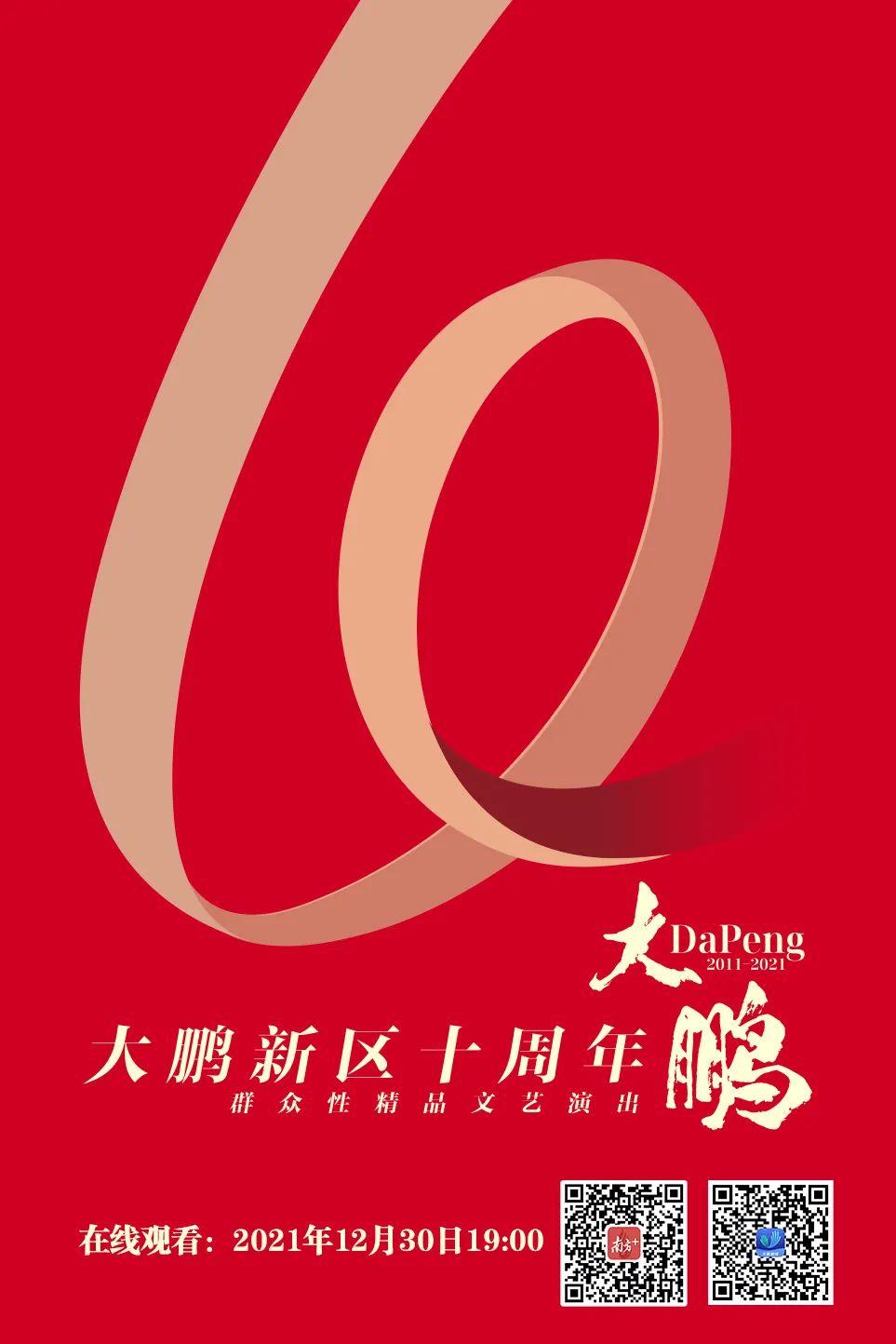 2021.12.30大鹏新区迎来十周年生日19:00-20:00大鹏新区十周年群众性精品文艺演出将全程进行线上播出识别二维码即可观看◆◆◆◆◆节目单内容来源|大鹏新区综合办公室编辑|谢雨婷统筹制作|深圳市大鹏新区融媒体中心点个在看,再评论