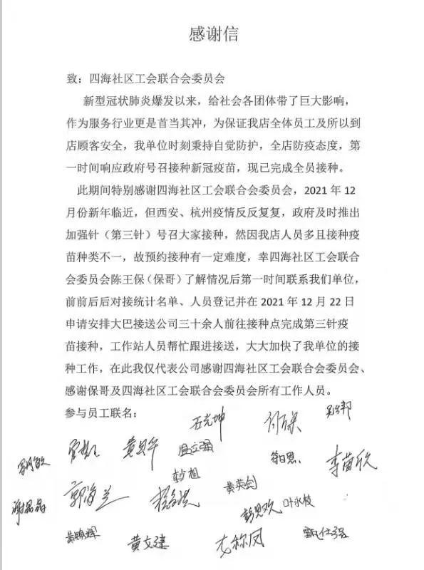 同时,提前为有意愿且符合接种条件的职工进行线上预约,并积极联系街道相关部门安排统一接送服务,分批次、分时段组织职工错峰前往疫苗接种点。通过这种覆盖面广、方便性高的贴心服务模式,四海社区工联会在尽量缩短职工脱岗时间,降低对企业生产运营影响的前提下稳步推进新冠疫苗接种工作,助力构筑防疫“安全墙”。