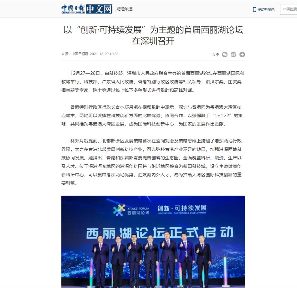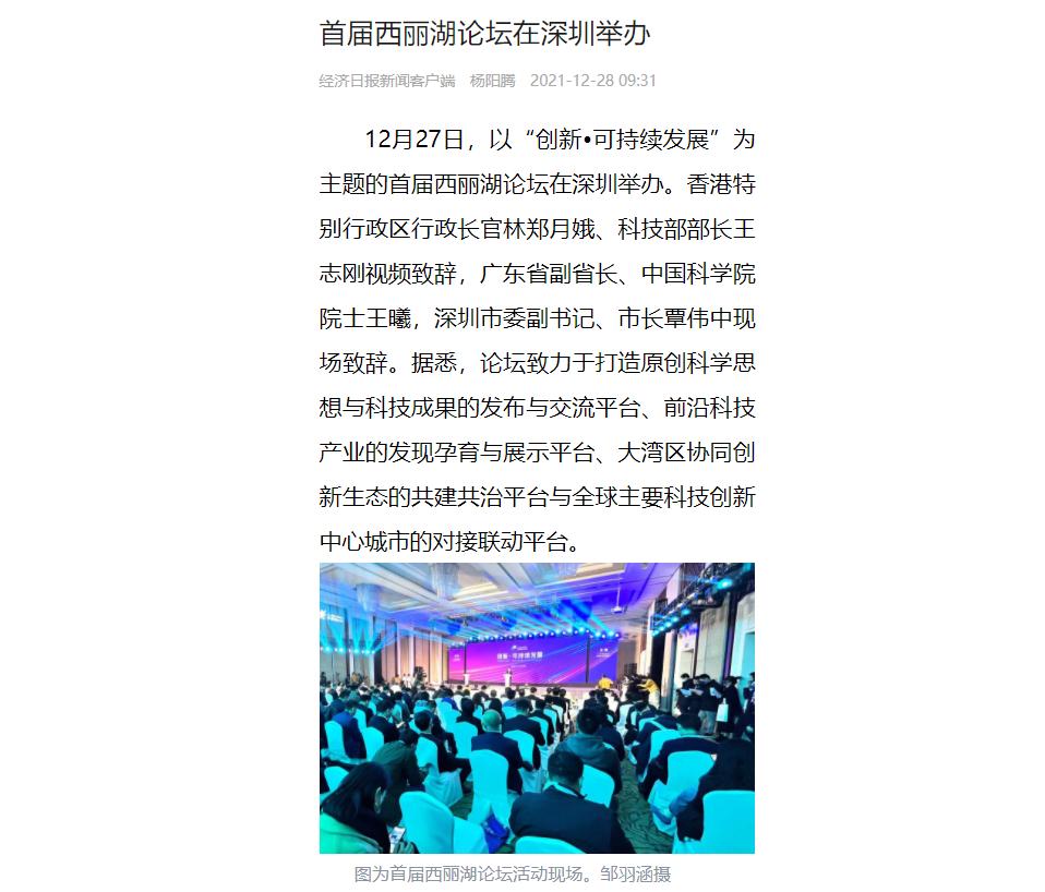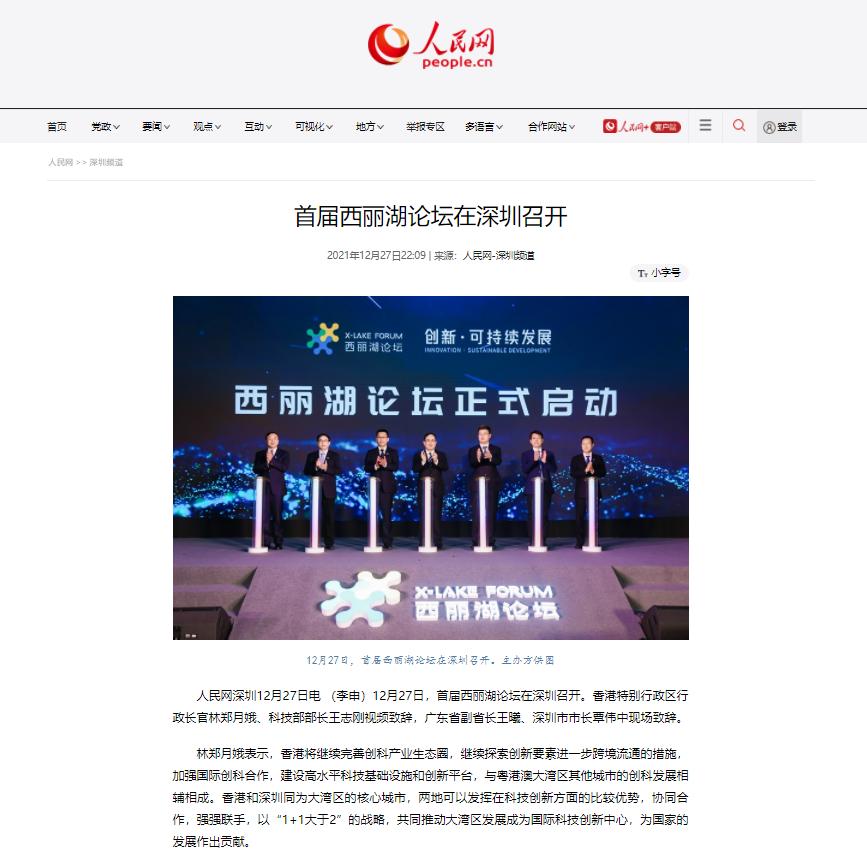12月27日,以“创新•可持续发展”为主题的首届西丽湖论坛在深圳举办。香港特别行政区行政长官林郑月娥、科技部部长王志刚视频致辞,广东省副省长、中国科学院院士王曦,深圳市委副书记、市长覃伟中现场致辞。据悉,论坛致力于打造原创科学思想与科技成果的发布与交流平台、前沿科技产业的发现孕育与展示平台、大湾区协同创新生态的共建共治平台与全球主要科技创新中心城市的对接联动平台。