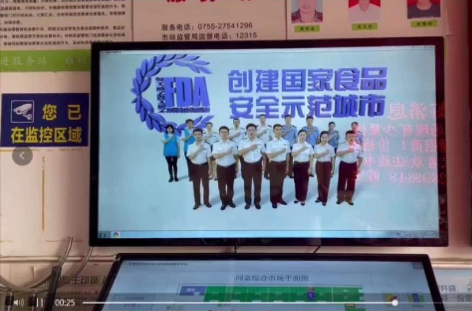 3.光明局通过各农贸市场和餐厅里的“互联网+明厨亮灶”显示屏,播放诚信经营公约以及创城倡议书。