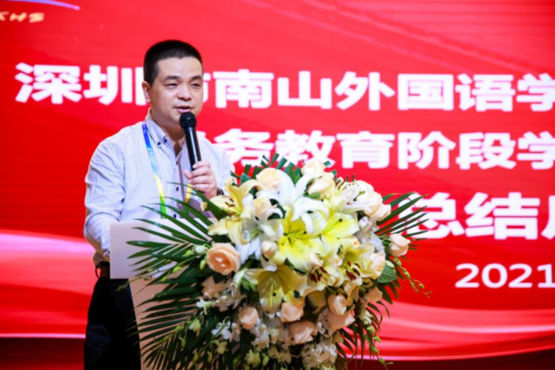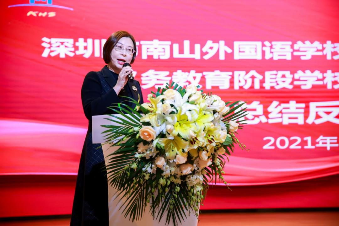 洪其华在讲话中用感叹、感恩、感奋三个关键词进行了总结:他感叹本次反馈会已超越了普通办学水平评估反馈会的范畴,是一场全景式的、量身定做的学术教育研讨盛会,为未来教育指明了方向;他代表杨珺局长,代表南山教育感谢评估组的智慧与用心,通过对科华学校的深度评测,用沉甸甸的报告树立了深圳市办学水平评估的楷模,也感谢科华人用实际行动传承南外基因,发展科华特色;针对评估的成果,他感奋教育部门将进一步总结经验,进一步激发和保障学校的发展。