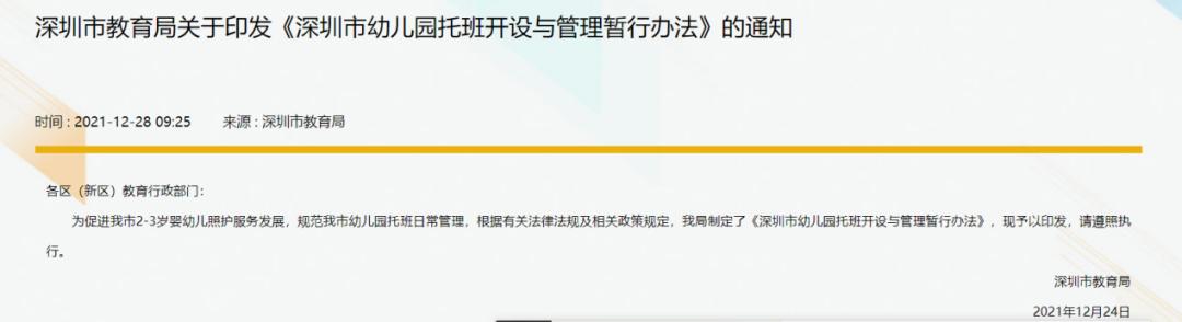 《深圳市幼儿园托班开设与管理暂行办法》(以下简称《办法》)日前印发。《办法》规定,幼儿园能够满足片区3-6岁幼儿入园需求,且具备为2-3岁婴幼儿开展照护服务的班级教室和师资资源的,可以开设托班。每个托班婴幼儿人数不超过20人,每个幼儿园托班班级数不超过该幼儿园核定班级数的15%。