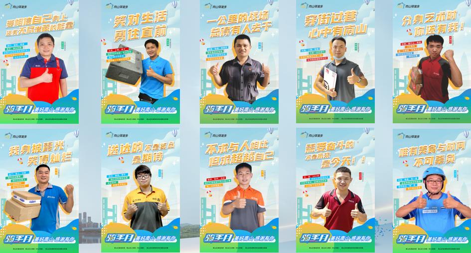 “骑手月”活动选树10名“最美骑手”、5家“党建先锋企业”,鼓励骑手和企业勇当标兵;发布《骑手服务手册》,涵盖了南山区为骑手提供的四大类11项服务,从深户办理、异地参保到骑车安全知识再到入党流程,引导骑手成为“党员先锋骑手”;展演原创歌曲《追光的人》、关爱骑手宣传片《这温暖 很南山》,发布《关爱骑手倡议书》及宣传海报,倡议全区物业理解支持骑手工作,解决其“进门难”“上楼难”等问题,覆盖全区500多个小区、170个物业公司;绘制“红色补给站”地图,将南山区为骑手打造的工会食堂、“南山驿家亲”驿站、党群服务中心等服务区域可视化、便捷化;向快递企业代表赠送职工医疗互助保障,为骑手的健康保驾护航等,形成企业和社会关心尊重骑手的良好氛围,倡导骑手融入社区治理。