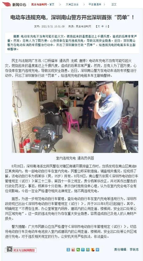 贪一时方便,心存侥幸的你在室内给电动车充电,置安全于不顾,南山警方绝不答应,开出深圳首张行政“罚单”,给违规充电的电动车车主敲响警钟。
