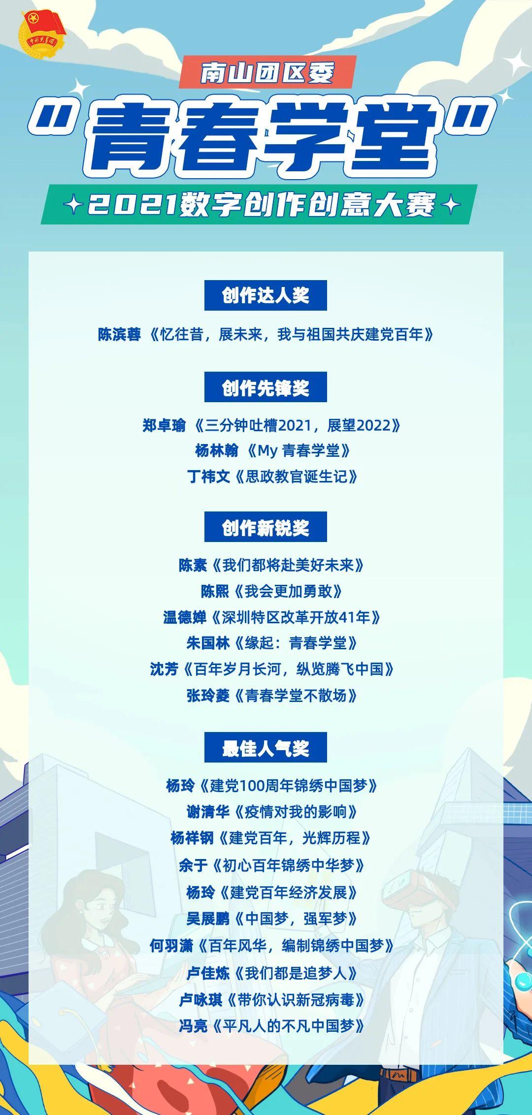 训练营期间,南山团区委和来画还联合举办了2021青春学堂数字创作创意大赛,邀请青年们用短视频“回顾2021,展望2022”,为今年画下一个圆满句点。