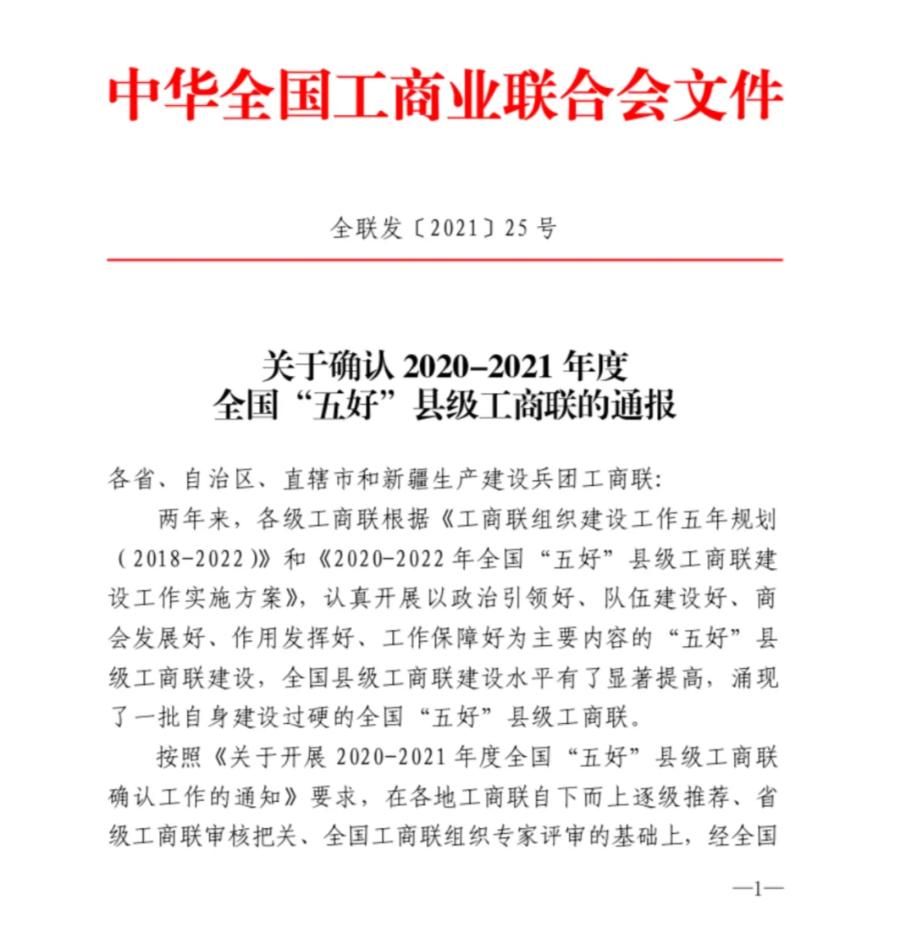近日,通过自下而上逐级推荐,对照全国“五好”县级工商联标准和各地制定的细化量化指标,在各省级工商联审核推荐、“互学互促”和全国工商联复核确认的基础上,经全国工商联主席办公会议审议通过,南山区工商联获评2020-2021年度全国“五好”县级工商联荣誉称号,已连续两届获此殊荣。