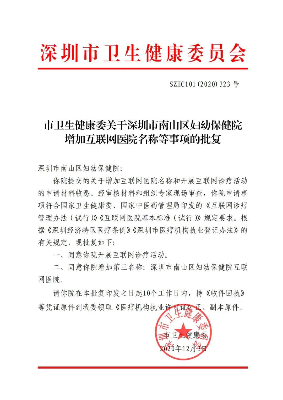 且为深圳市妇幼医院中首家综合实现互联网诊疗中的预约挂号、健康咨询、问诊服务、电子处方、处方配送到家、视频问诊、护理到家等功能的互联网医院。