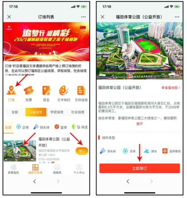 平台涵盖了足球、羽毛球、篮球、网球、游泳等热门运动项目,场馆距离、图片、地址、联系电话等信息也一应俱全,订场支付一键实现,充分满足市民各类健身需求。市民还可以“一键报名”参与音乐会、舞蹈班,以及“福田超级联赛”等福田文体活动,尽享中心城区文化体育盛宴。