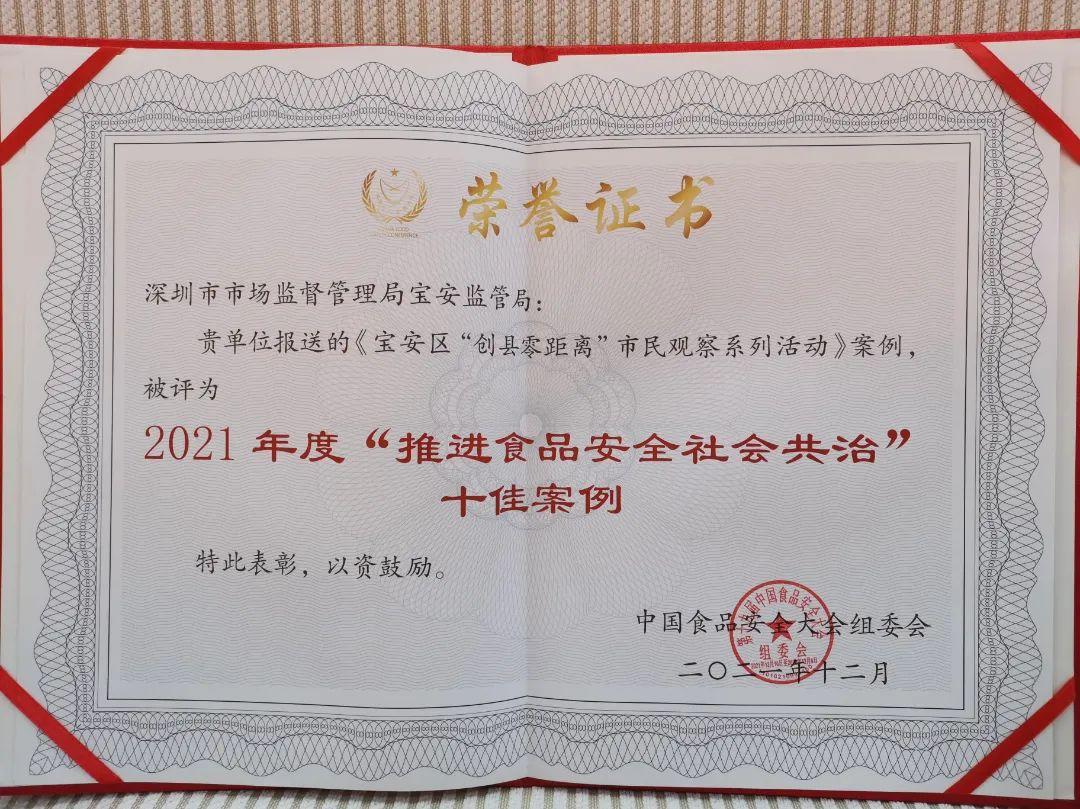 在全市创建国家食品安全示范城市的主旋律下,宝安区在积极配合全市创城工作的基础上,奋勇争先举全区之力创建广东省食品安全示范县。推出“创县零距离”市民观察团系列活动,将“创城”“创县”高度融合,向市民展示创建成果。市市场监管局、宝安区政府领导先后多次参与活动的启动、总结仪式及线下参访活动,宣传“双创”工作成效,身体力行为深圳、为宝安食品安全代言。