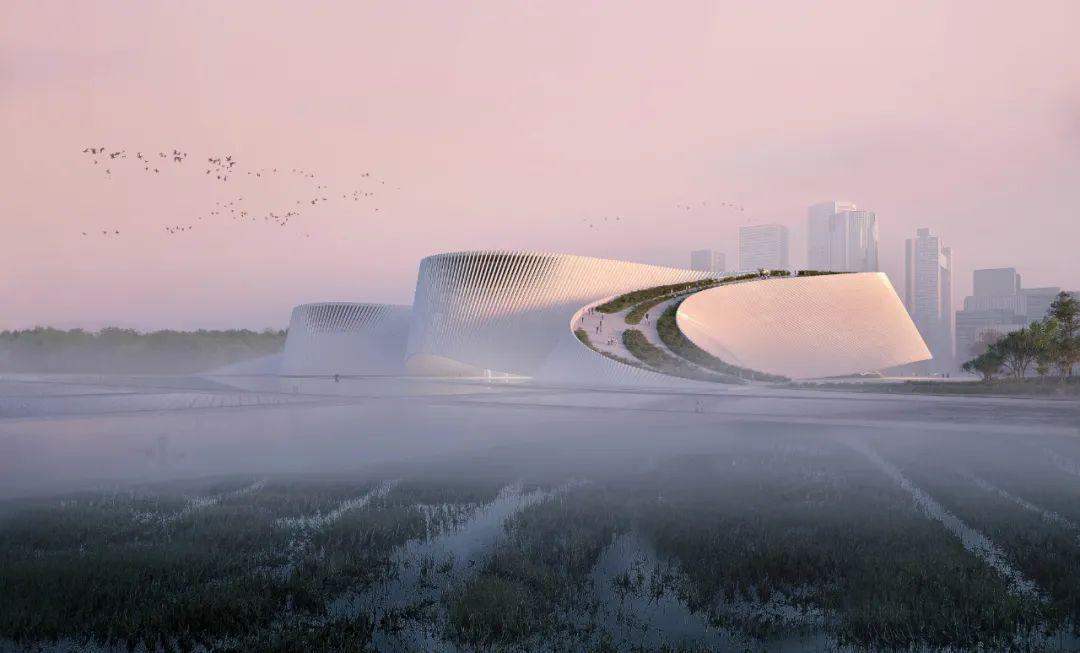 设计基于“优美和谐”的理念,优雅的外表犹如一艘未来主义的船只。通过精心策划的玻璃开口展示充满活力的主题展览,科技馆建筑将探索并增强美丽的自然景观与高科技、教育、展览项目之间的联系,将两者通过景观中的活动空间相连。