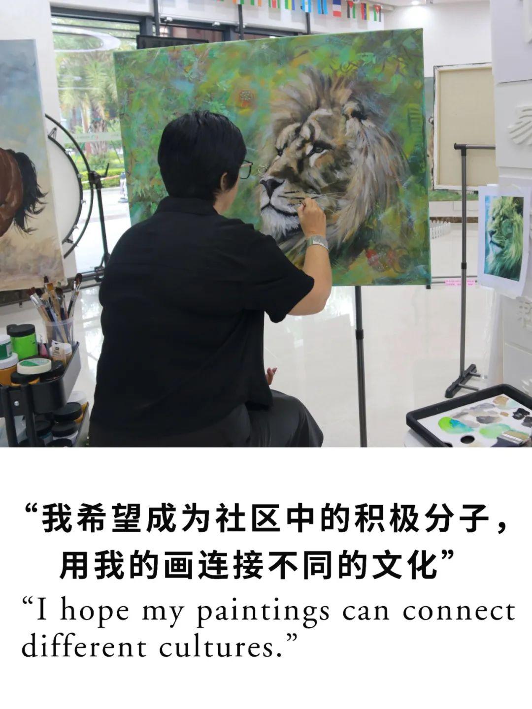 Majo, a volunteer from Portugal, held the exhibition Connections Between Animals And Human at the center and completed a painting named Racing on the spot. She made a bold attempt of co-creating a work named A Better Future with the people who came to see the exhibition.